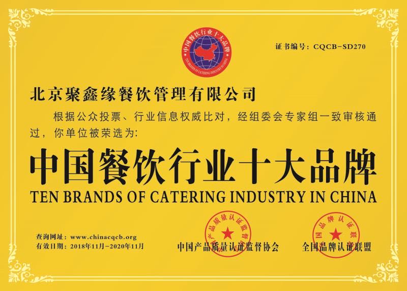 北京聚鑫緣餐飲管理有限公司是由目前餐飲界領(lǐng)軍人物,全國飯店業(yè)高級評委、國家級技能競賽裁判員、高級營養(yǎng)配餐師、2005年第三屆國際食神爭霸賽個人金獎、銀獎得主、中國烹飪大師,張寶田先生創(chuàng)辦,注冊資金:3888萬元,北京市政府采購定點服務(wù)單位,公司成立以來相關(guān)業(yè)務(wù)已覆蓋全國部分城市。本公司是國家有關(guān)部委批準建立的以管理與經(jīng)營各企事業(yè)、大中專院校餐廳、機關(guān)、食堂承包托管、酒店酒樓人才勞務(wù)輸出、前期策劃籌建、餐飲管理咨詢、廚房設(shè)備規(guī)劃安裝、糧油及原材料配送等綜合性后勤服務(wù)機構(gòu)。